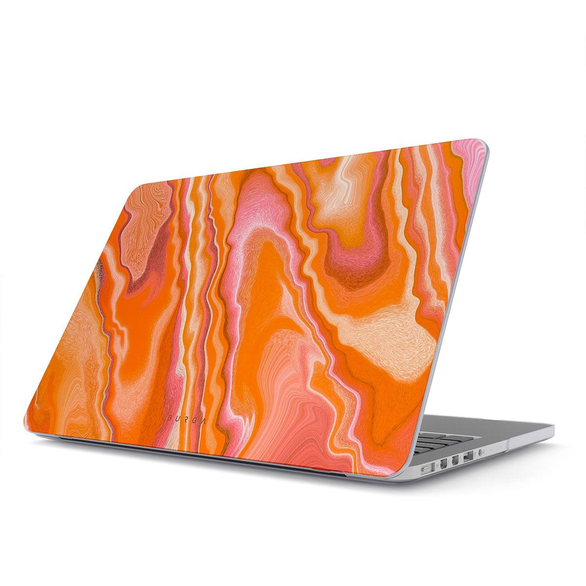 A právě proto je tu BURGA. Vymysleli jsme obal, který se tváří jako doplněk, ale přitom chrání MacBook před opotřebením. Skládá se ze dvou krytů (na vrchní a spodní část laptopu), navzdory tomu je ale tenký a nepřidává na tloušťce. Spodní část krytu má navíc mřížku, aby se ti MacBook nepřehřál, až si ho položíš do klína… Co víc si ještě přát? My víme! Snadný přístup ke všem zdířkám. A i to máme pod palcem! Ne však pod obalem.