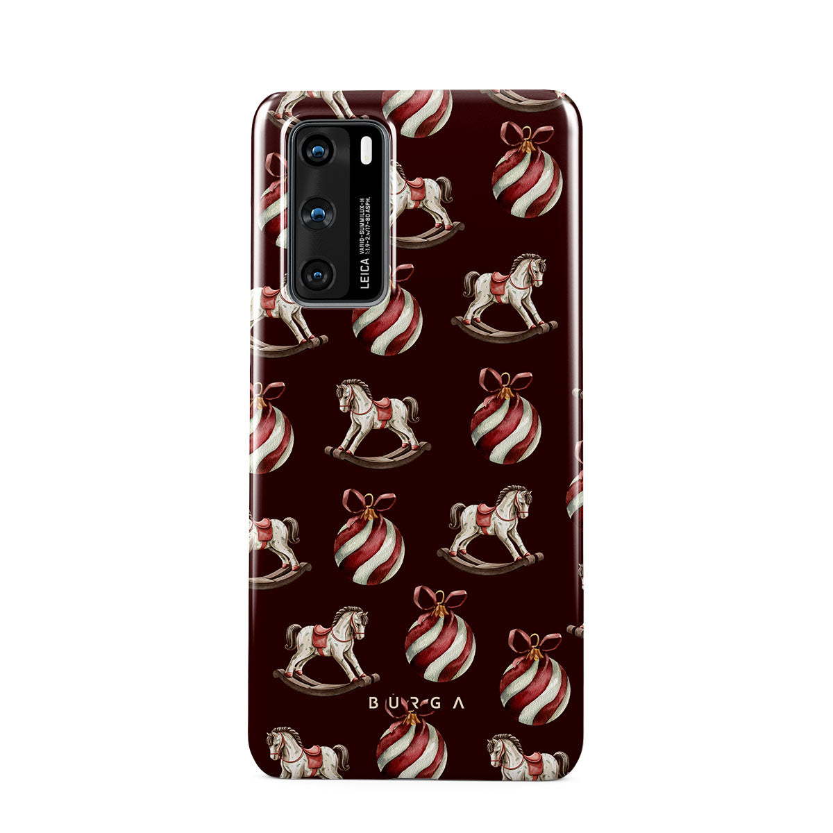 Typické pro tento motiv: houpací koně, baňky, červená, vánoční vzor