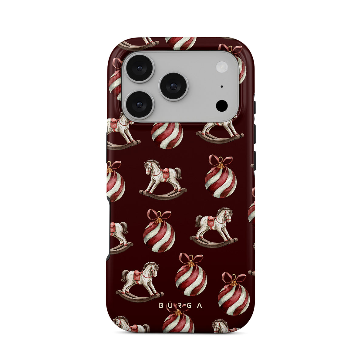 Typické pro tento motiv: houpací koně, baňky, červená, vánoční vzor