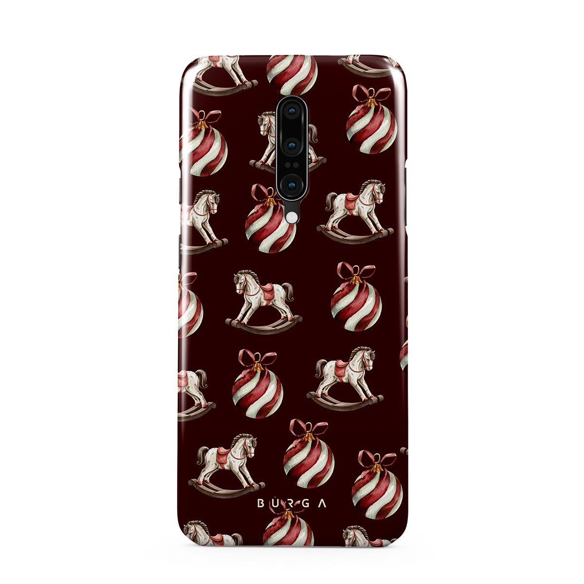 Typické pro tento motiv: houpací koně, baňky, červená, vánoční vzor