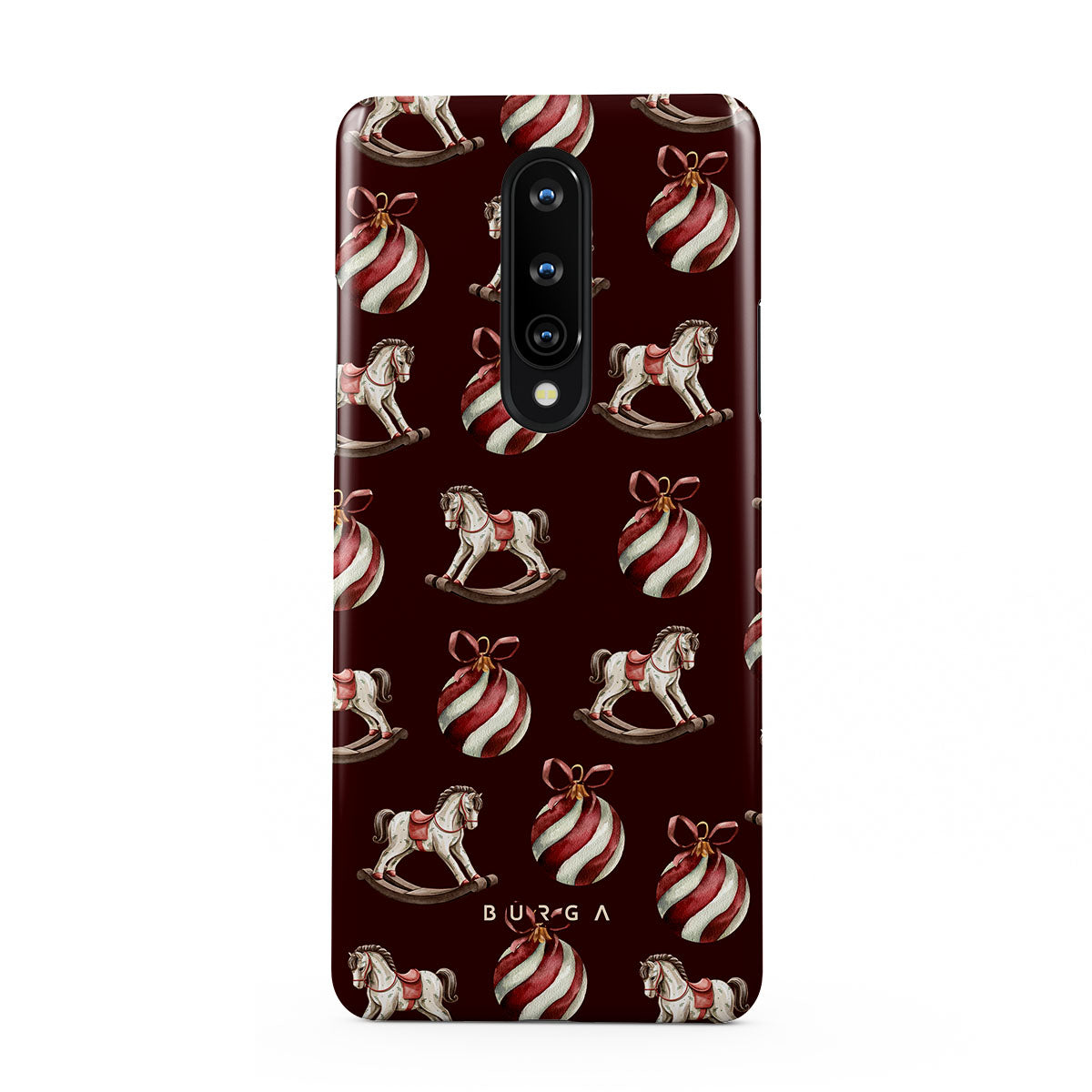 Typické pro tento motiv: houpací koně, baňky, červená, vánoční vzor