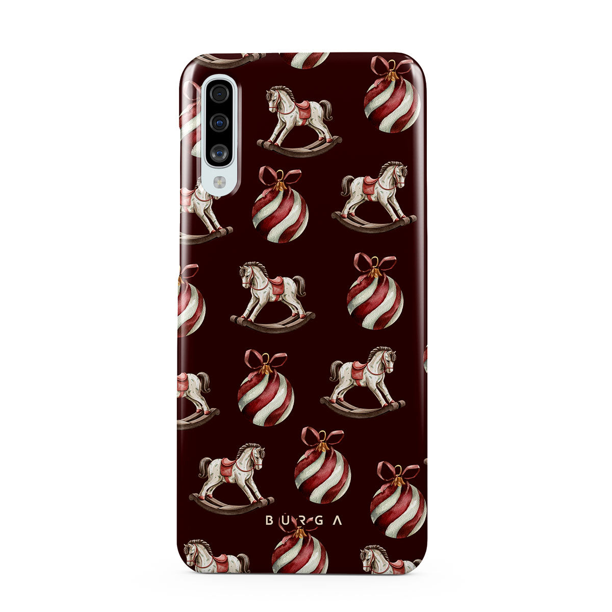 Typické pro tento motiv: houpací koně, baňky, červená, vánoční vzor