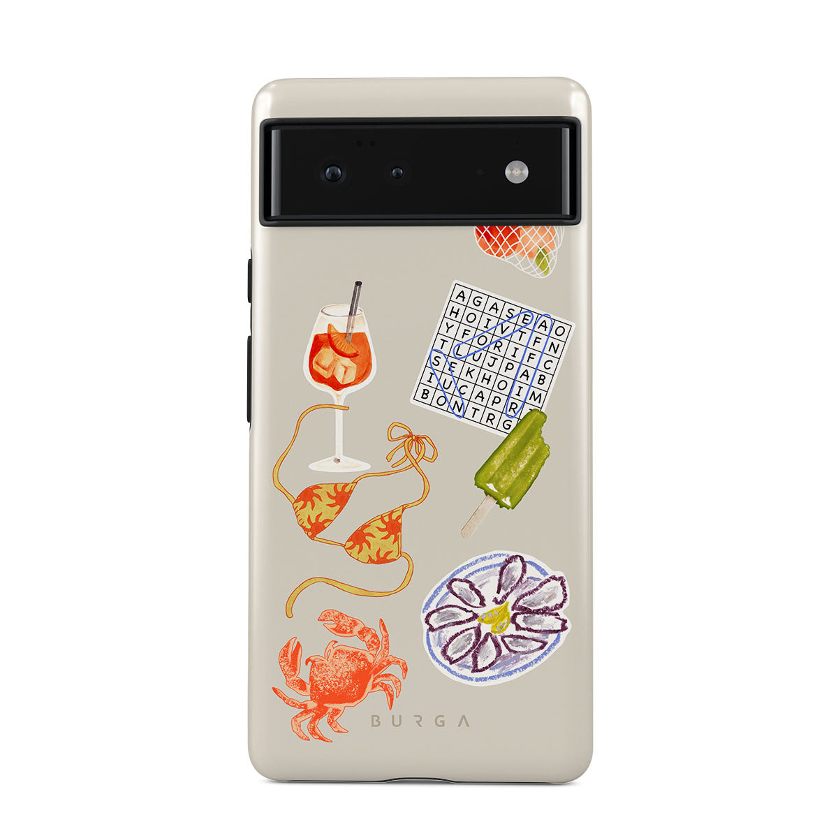 Typické pro tento motiv: kraba, talíř s ústřicemi, nanuk, křížovku, spritz koktejl, vrchní díl bikin, ovoce.