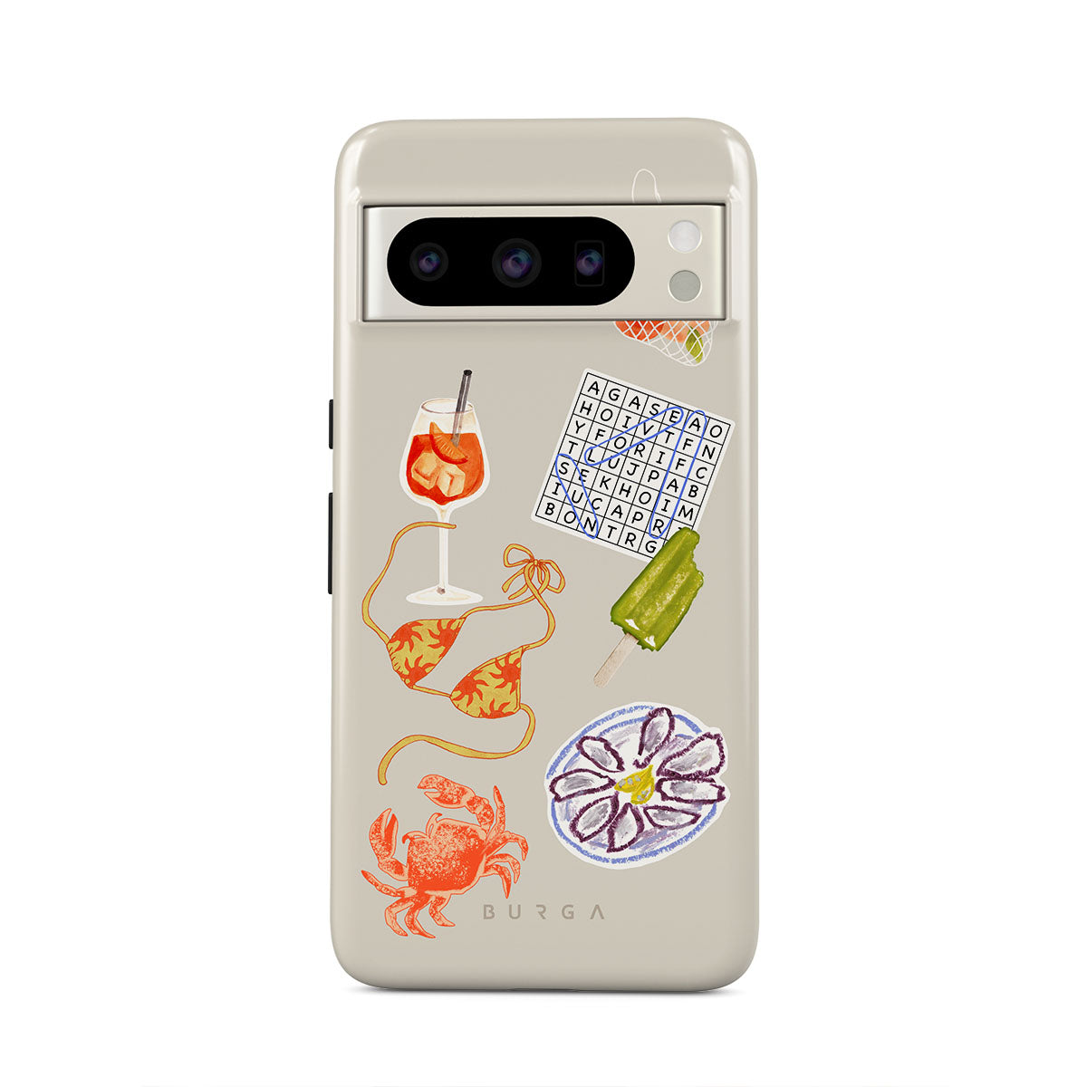 Typické pro tento motiv: kraba, talíř s ústřicemi, nanuk, křížovku, spritz koktejl, vrchní díl bikin, ovoce.