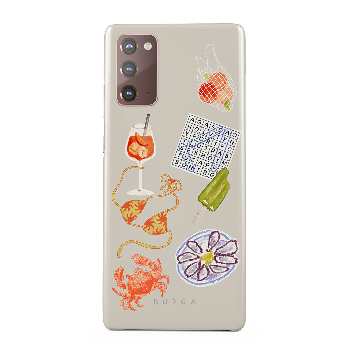 Typické pro tento motiv: kraba, talíř s ústřicemi, nanuk, křížovku, spritz koktejl, vrchní díl bikin, ovoce.
