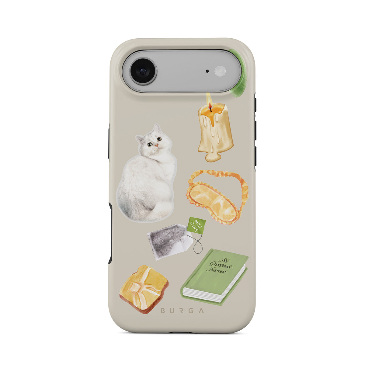 Typické pro tento motiv: bílou kočku, zelenou knihu, svíčku, Gua Sha tyčinku, masku na spaní, čajový sáček, žlutý krystal.
