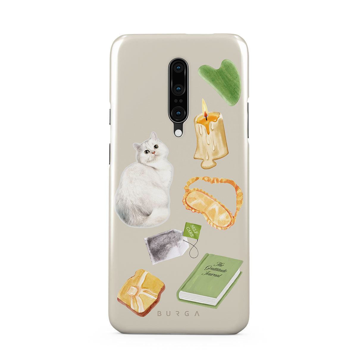 Typické pro tento motiv: bílou kočku, zelenou knihu, svíčku, Gua Sha tyčinku, masku na spaní, čajový sáček, žlutý krystal.