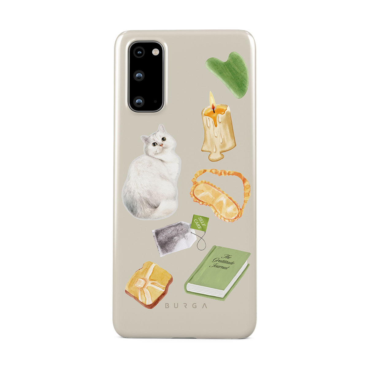 Typické pro tento motiv: bílou kočku, zelenou knihu, svíčku, Gua Sha tyčinku, masku na spaní, čajový sáček, žlutý krystal.
