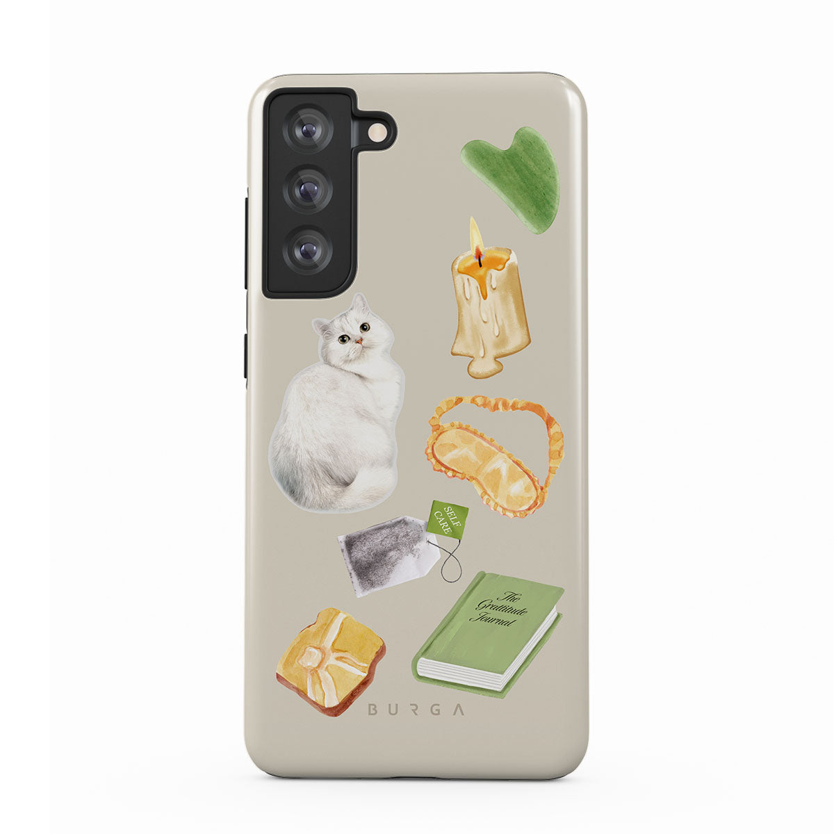 Typické pro tento motiv: bílou kočku, zelenou knihu, svíčku, Gua Sha tyčinku, masku na spaní, čajový sáček, žlutý krystal.
