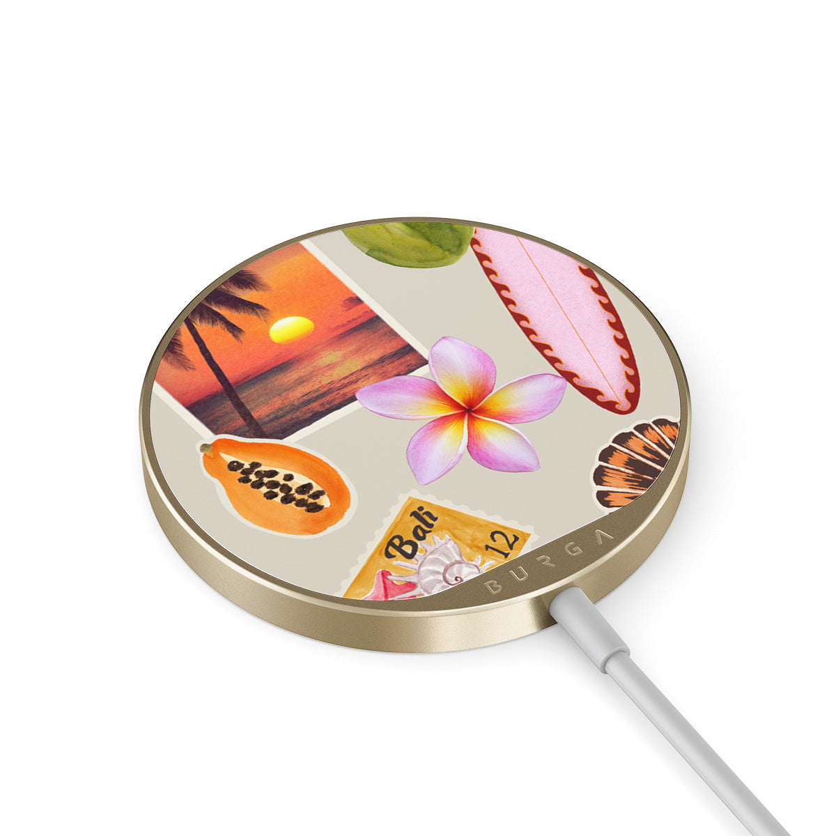 Integrovaný kabel s délkou 1,5 m usnadňuje nabíjení, ať už jsi v kanceláři, odpočíváš na pohovce nebo zabíjíš čas v letištním salónku. Skleněná zadní část BURGA ti navíc nabízí přes 500 potisků, ze kterých můžeš vybírat tak, aby tvá nabíječka vypadala tak dobře jako tvůj kryt.