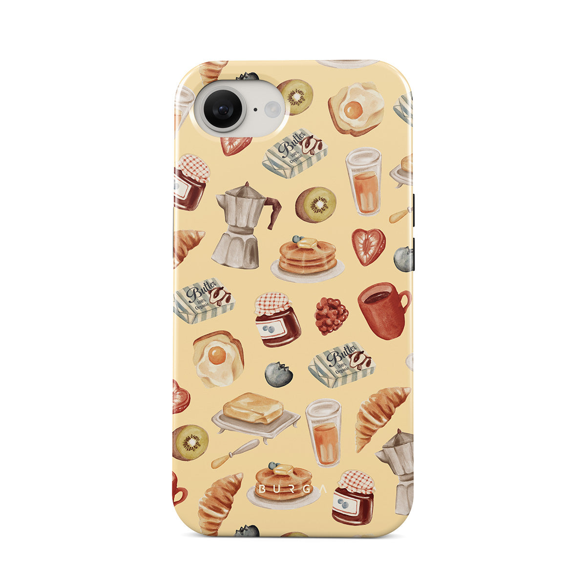 Typické pro tento motiv: snídaňové potraviny, palačinky, marmeláda, vejce, máslo, káva, sladkosti, ovoce, pomerančový džus, croissant
