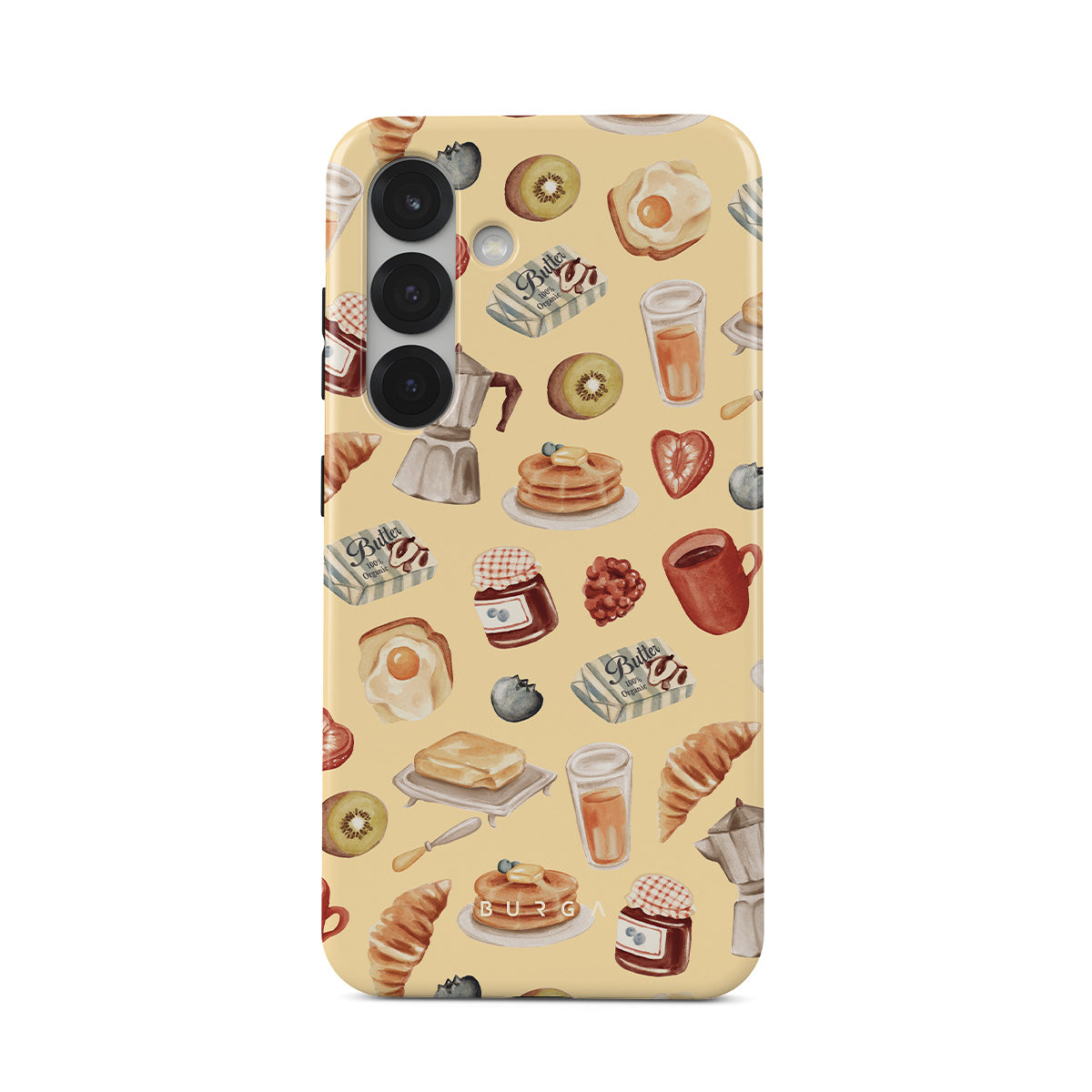 Typické pro tento motiv: snídaňové potraviny, palačinky, marmeláda, vejce, máslo, káva, sladkosti, ovoce, pomerančový džus, croissant