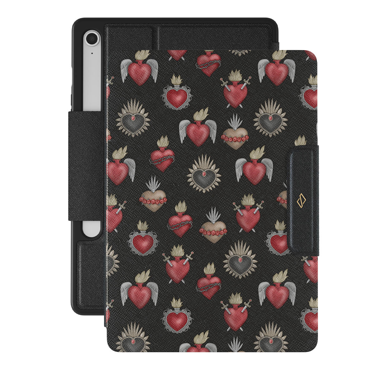 Přední strana má magnet, který ji drží v uzavřené pozici.