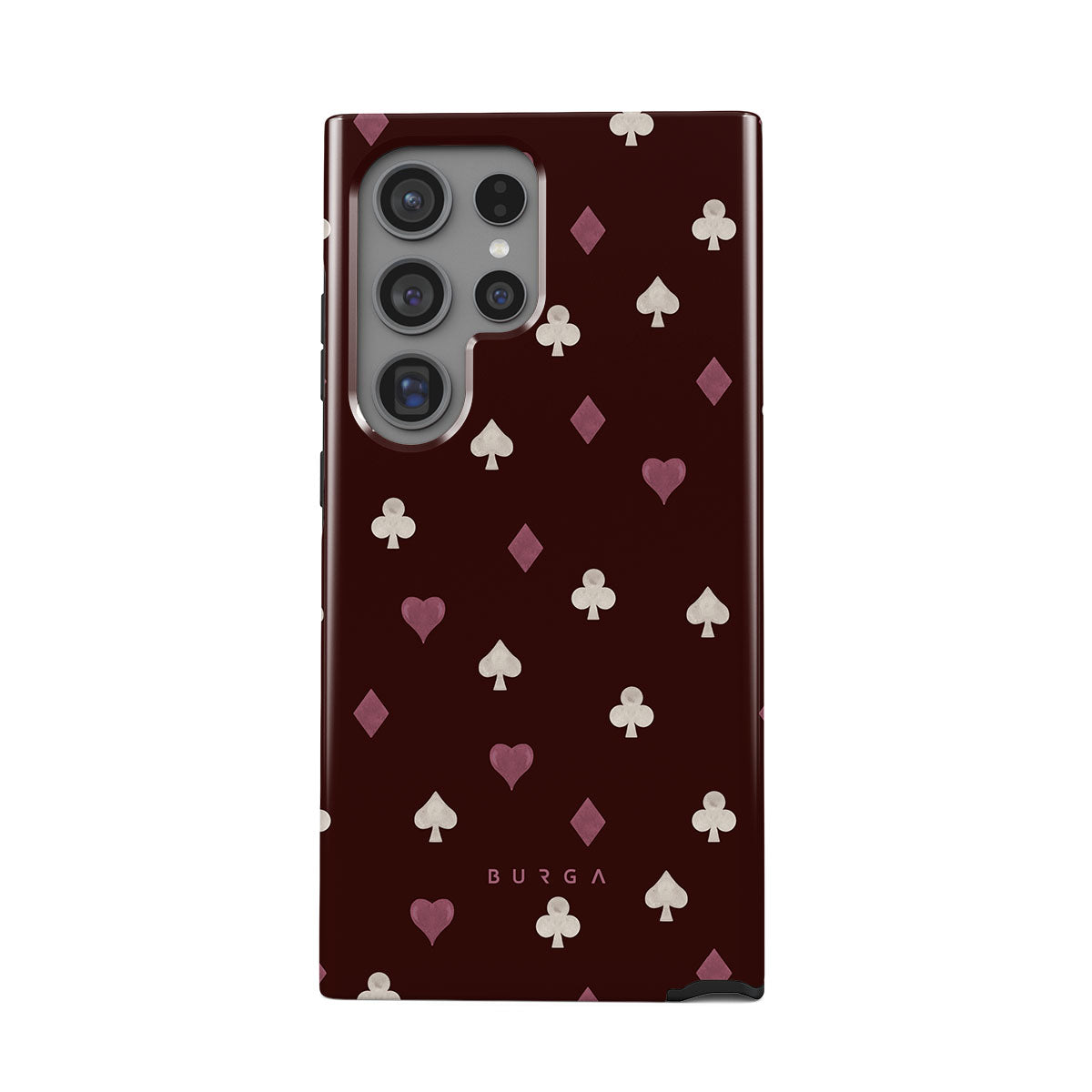 Typické pro tento motiv: karetní symboly, srdce, piky, kára, kříže, vínové pozadí