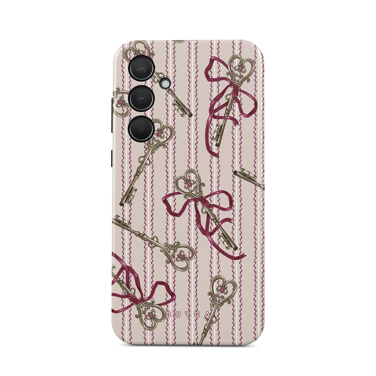 Typické pro tento motiv: starožitné klíče, mašle, růžové stuhy, pruhované pozadí