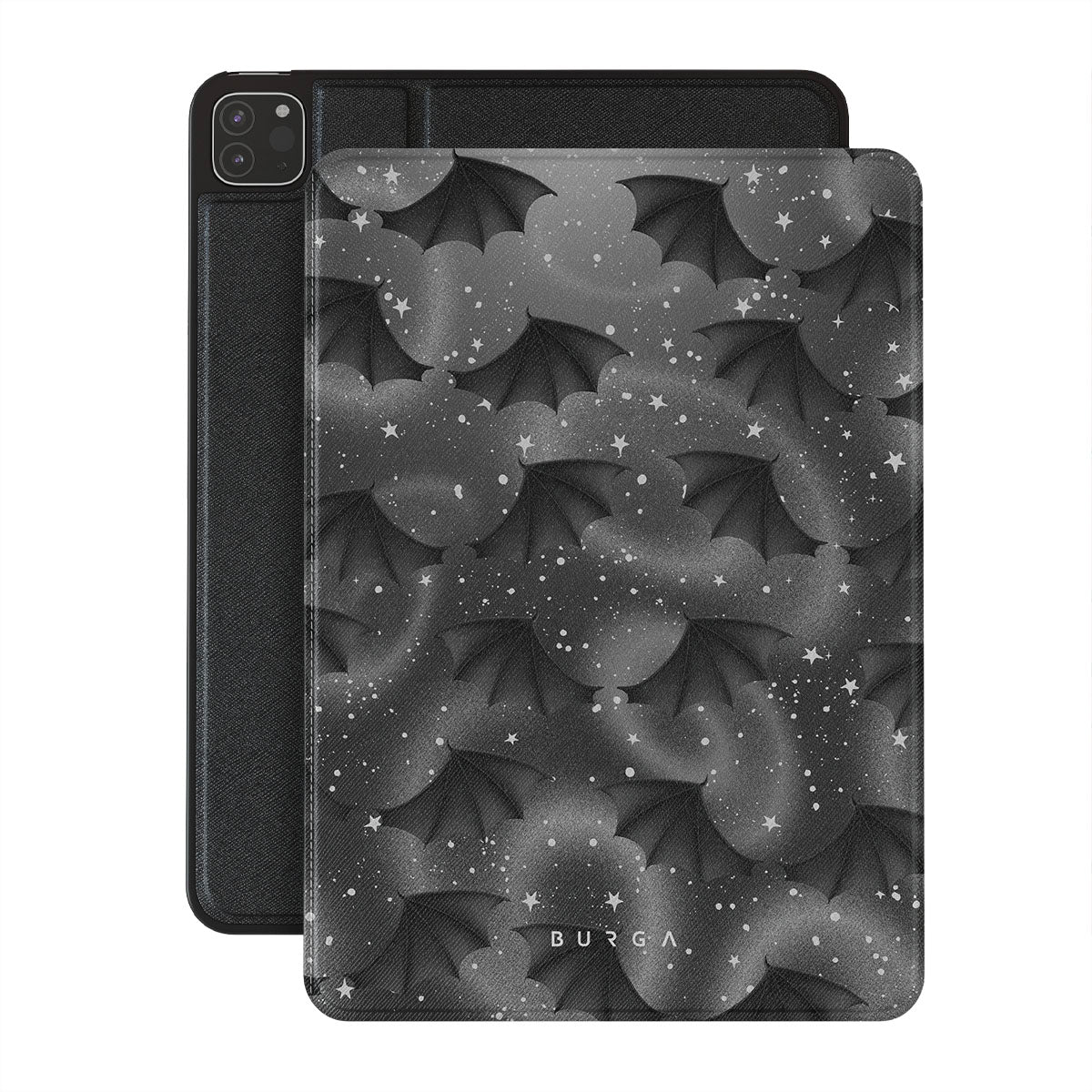 Typické pro tento motiv: netopýří křídla, hvězdy, mystické víry, černé nebe