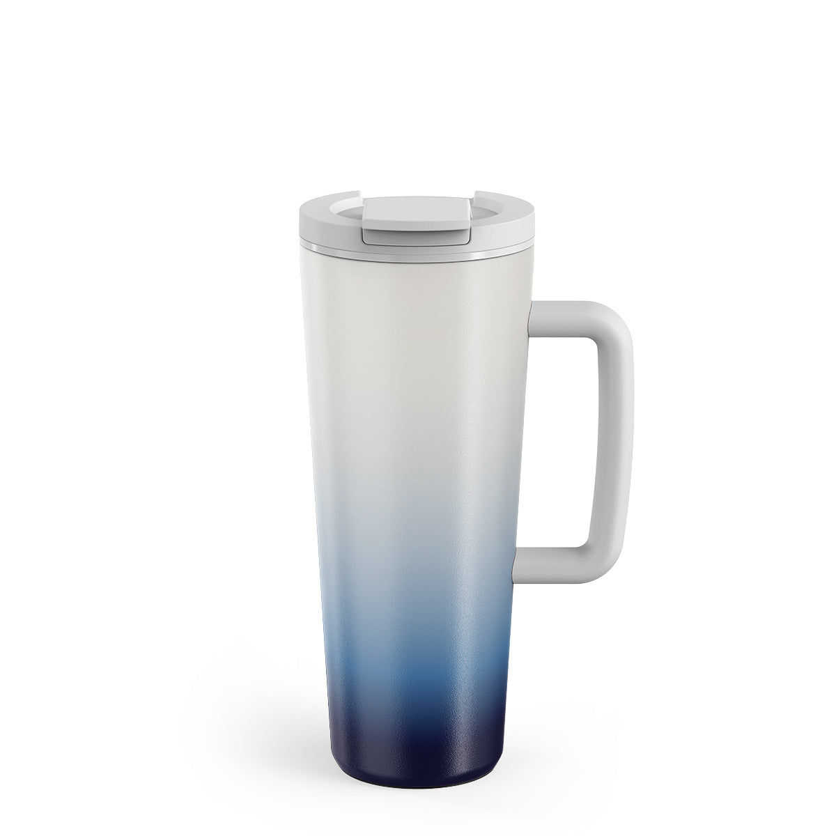 Ze všech úhlů jako dělané pro život, jaký je. Zúžená spodní část pasuje do většiny držáků na nápoje v autě. Velké držadlo ti dodá pocit stability, když jsi na cestách. Neklouzající gumová podložka chrání stůl a předchází převržení.